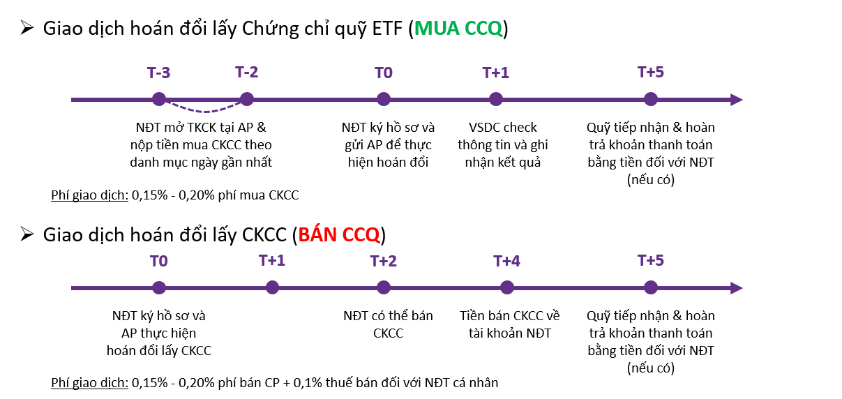 Hình thức giao dịch | <10 lô CCQ – giao dịch thỏa thuận ≥10 lô CCQ – giao dịch hoán đổi |